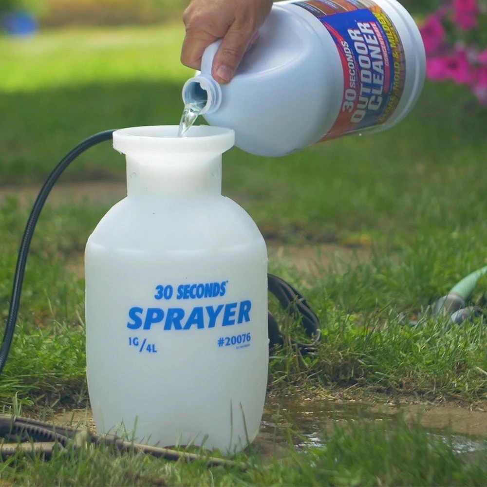 30 Seconds Cleaners are the Original and still the best Outdoor Cleaners since 1977 when you need to remove stains from Algae, Mold and Mildew or KILL Lichen and Moss. No need for noisy, expensive Pressure Washers with 30 Seconds Cleaners. For a Fast Acting, Instant Clean that wipes out Dirt & Grime, you will want the Original 30 Seconds Outdoor Cleaner. Simply spray on, brush if needed, and rinse away stains from Algae, Mold, and Mildew. Safe around your lawns and landscaping, too! From your home to your garden gnome, clean it all with 30 Seconds Outdoor Cleaner. To treat large surface areas overtime, try 30 Seconds Spray & Walk Away. The best choice when looking to KILL Lichen, Moss, Mold and Algae, especially on those large surface areas where rinsing is a hassle. Like the name says, Simply Spray & Walk Away! Works over time with Mother Nature to erode away the dead and decaying material. Perfect on roofs, decks, sidewalks, driveways, and any hard surface where you don’t need immediate results. 30 Seconds Cleaners are safe to use on all outdoor surfaces, from roofs to sidewalks and everything in between. Whether looking for an Instant Clean or a Treatment that works overtime, with 30 Seconds it’s clean when YOU want it clean.