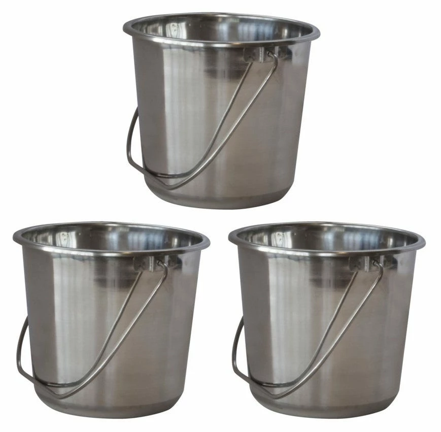 Use the AmeriHome 3 Piece Stainless Steel Bucket Set in the house, garage, patio, and garden. The 22 gauge steel buckets nest together for easy storage, and have long, sturdy stainless steel handles for carrying or hanging. The stainless steel pail is better option that plastic, not only is it more durable and long lasting, but it looks much better for applications when it is visible and on display.