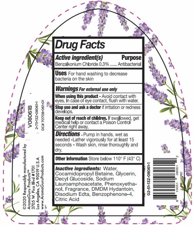 Aroma Guru’s antibacterial hand soap in a luxurious French Lavender scent.