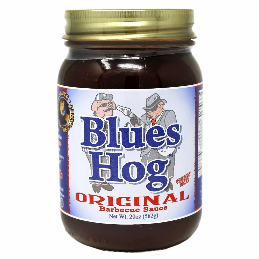 - Blues Hog barbecue sauce is a gourmet sauce made from all natural ingredients and its sweet, yet spicy flavor enhances the taste of all meats prepared on the grill or in the kitchen