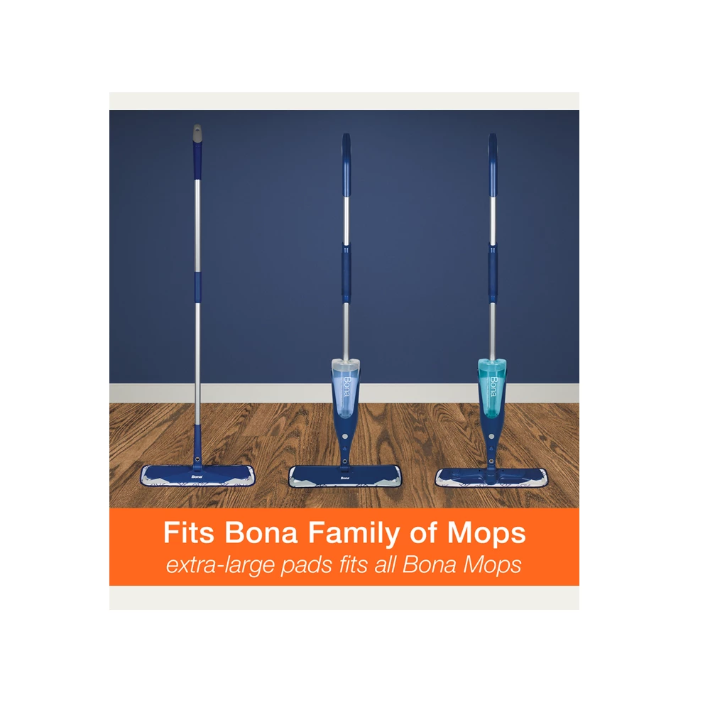The Bona Microfiber Cleaning Pad features a unique design with dual zone cleaning action. The dark blue outer fibers break up grime while the inner light blue fibers trap and absorb dirt. The soft microfiber won’t scratch or damage your floor, and is safe for use on hardwood or hard-surface floors like stone, tile, laminate and LVT. Bona’s Microfiber Cleaning Pads are machine washable for up to 500 times, making them a sustainable addition to your cleaning routine. They are specifically designed for use with The Bona System including the Bona Family of Mops.