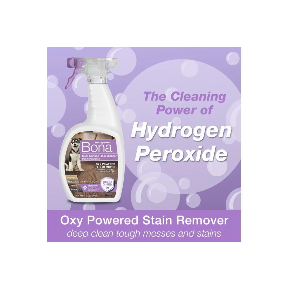 Relax. Bona makes it easy to care for your floors. When it comes to cleaning messes made by our furry friends, look to the brand trusted by flooring professionals since 1919. Bona’s oxy powered floor cleaner deep cleans and penetrates through tough stuck-on stains, tracked in dirt, and accident messes with the cleaning power of Hydrogen Peroxide. The Odor Guard Technology eliminates and neutralizes urine and other organic odors upon contact. Love your floors with Bona. Sustainable solutions for a cleaner and healthier home.