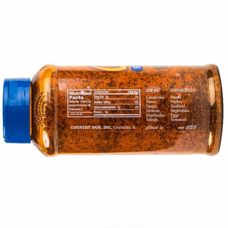 County Bob’s Seasoning Salt has a tasty blend of ingredients that makes it a versatile addition to all sorts of dishes. It can be used to enhance the taste of both meat and vegetables. Keep this 8-oz salad salt handy in the pantry or next to the grill for a dash of flavor whenever you need it.