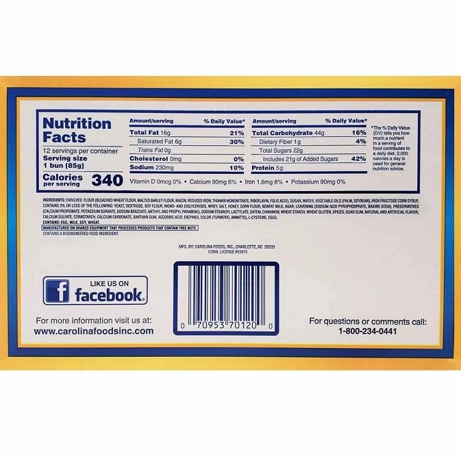 Sink your teeth into sweet and tender pastry anytime you like with Duchess Honey Buns. Each individually wrapped honey bun is the perfect treat alongside your morning coffee or as an after-dinner dessert. Bring them to work, to school, while running errands, anywhere, as they’re always fresh, tasty, and easily portable.