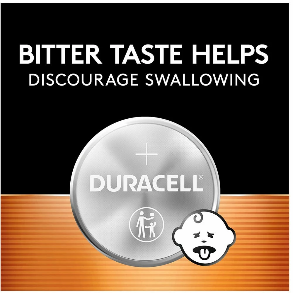 - BITTER TASTE HELPS DISCOURAGE SWALLOWING: Duracell Lithium Coin batteries are the only batteries with a non-toxic, bitter coating to help discourage swallowing.