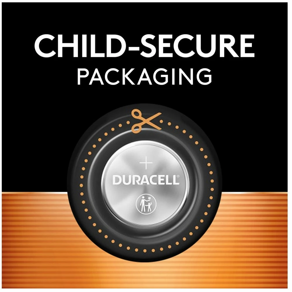 - CHILD-SECURE PACKAGING makes Duracell Lithium Coin battery packaging nearly impossible to open without scissors.