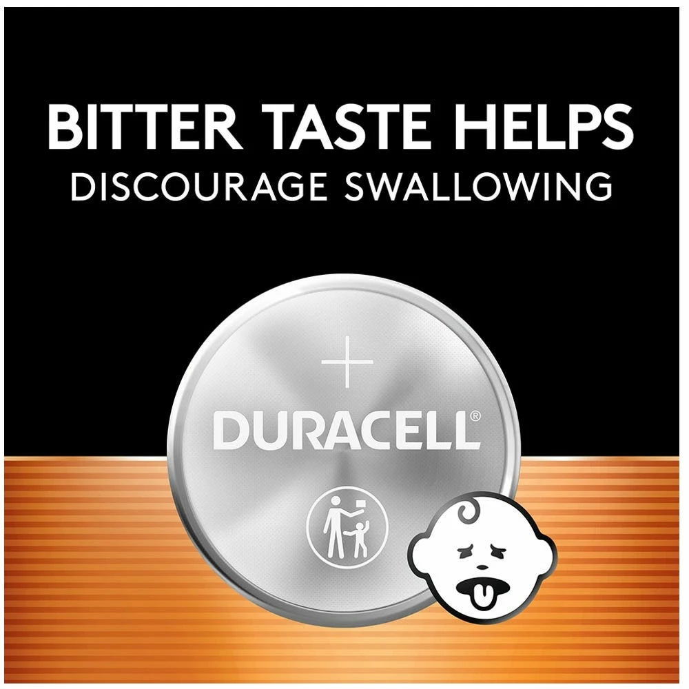 - BITTER TASTE HELPS DISCOURAGE SWALLOWING: Duracell Lithium Coin batteries are the only batteries with a non-toxic, bitter coating to help discourage swallowing.