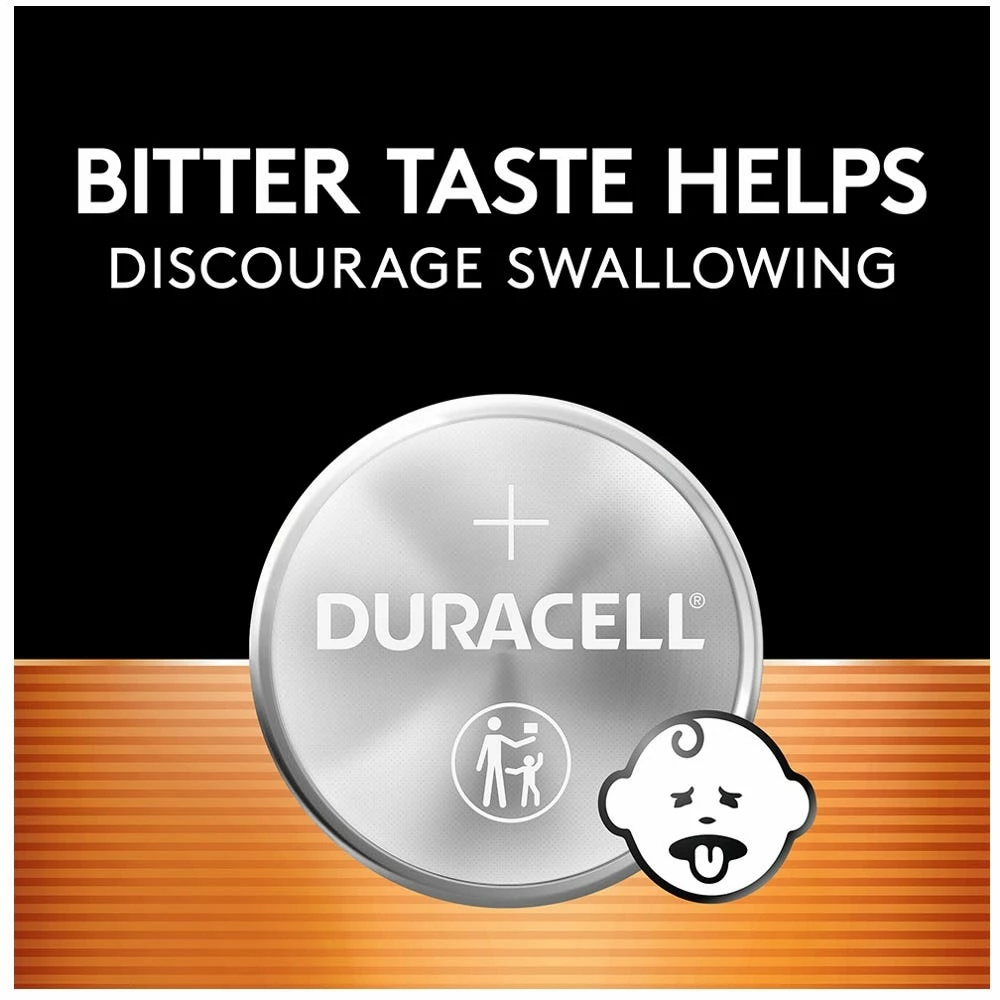 - BITTER TASTE HELPS DISCOURAGE SWALLOWING: Duracell Lithium Coin batteries are the only batteries with a non-toxic, bitter coating to help discourage swallowing.