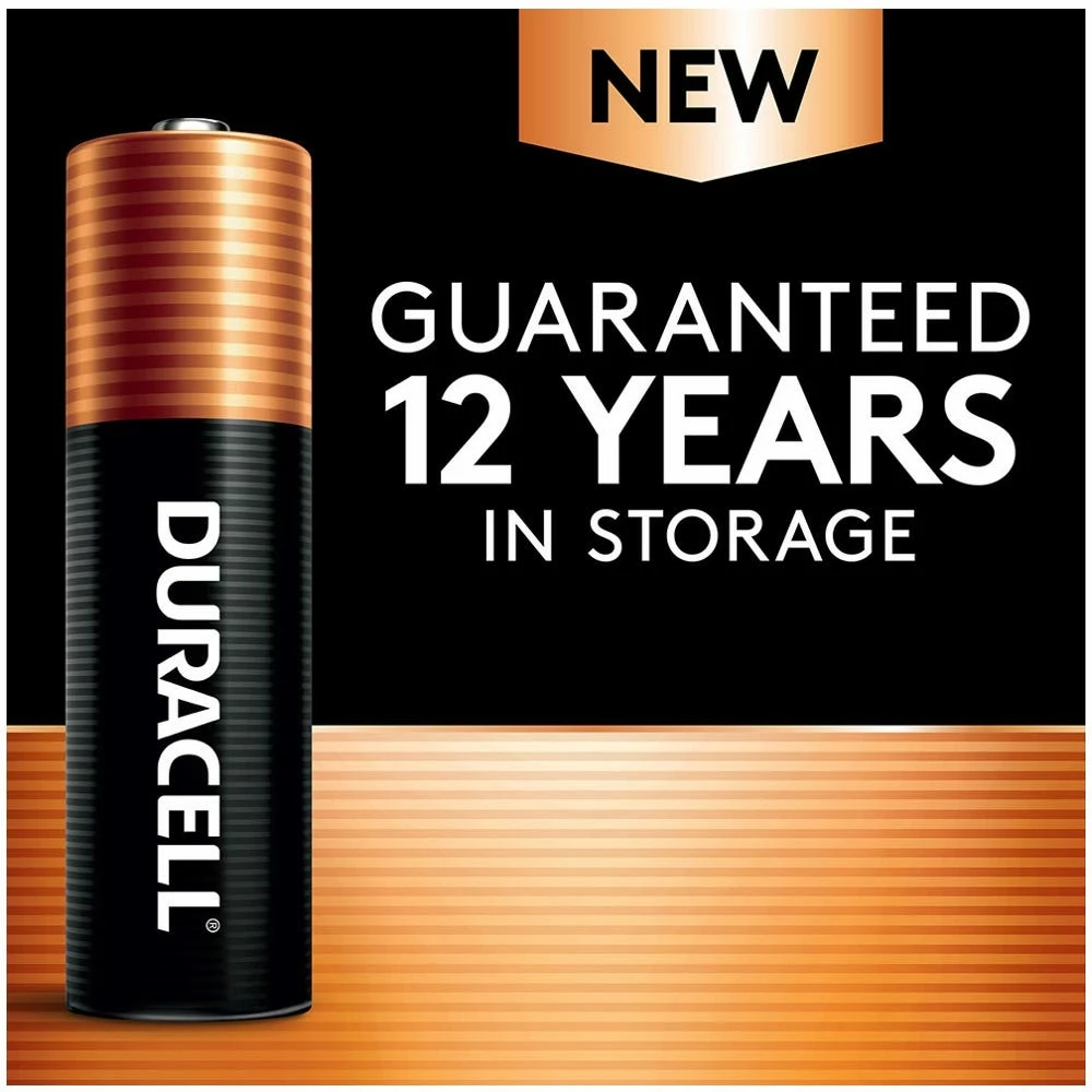 - GUARANTEED FOR 12 YEARS IN STORAGE: Duracell guarantees each Coppertop AA alkaline battery to last 12 years in storage, so you can be confident these batteries will be ready when you need them.