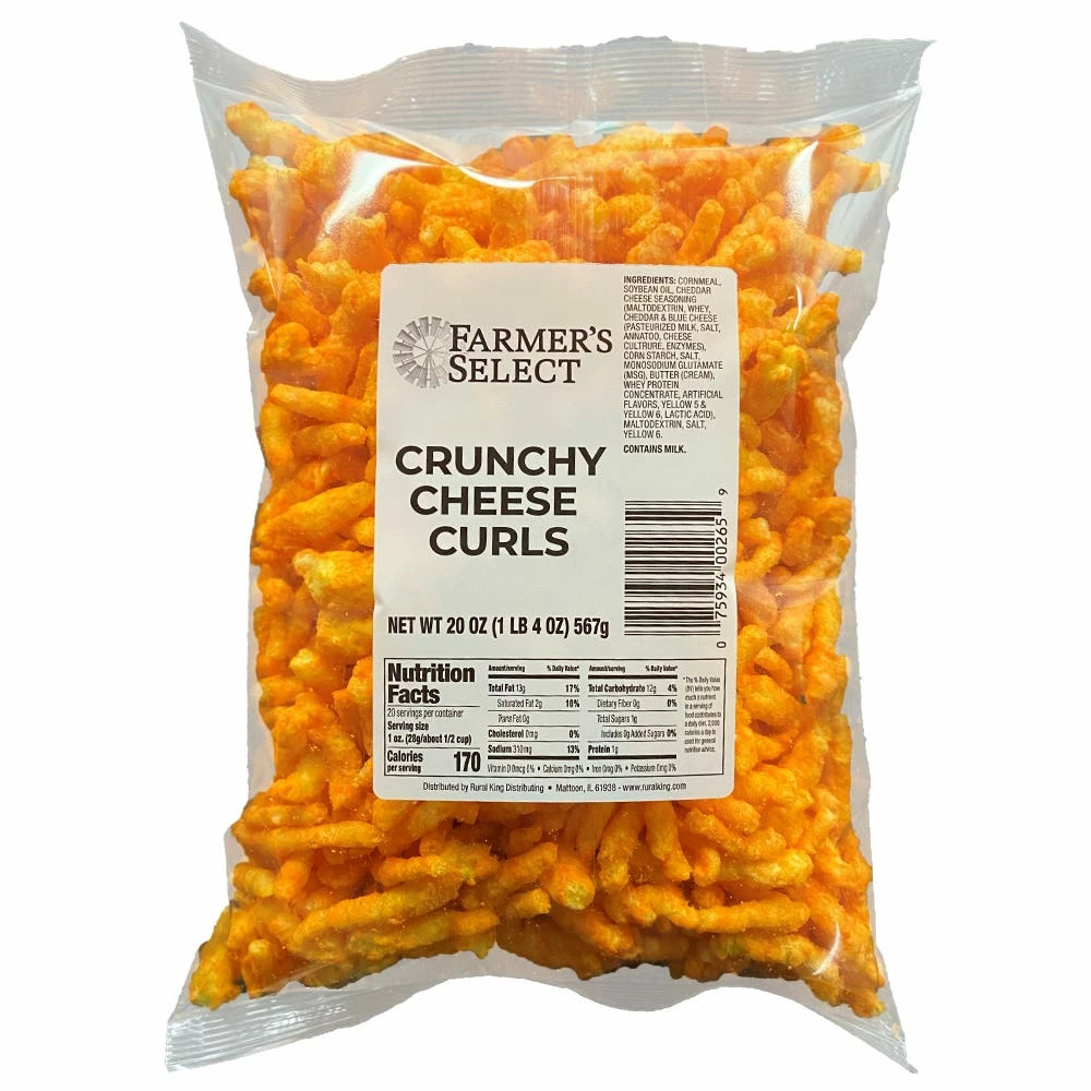Framers Select Crunchy Cheese Curls are good and flavorful. With a one-of-a-kind delicious, crunchy orange cheese taste. Enjoy at parties, gatherings, or individually as a snack. Be prepared to enjoy cheesy goodness. Store on a dry shelf—no refrigeration required.