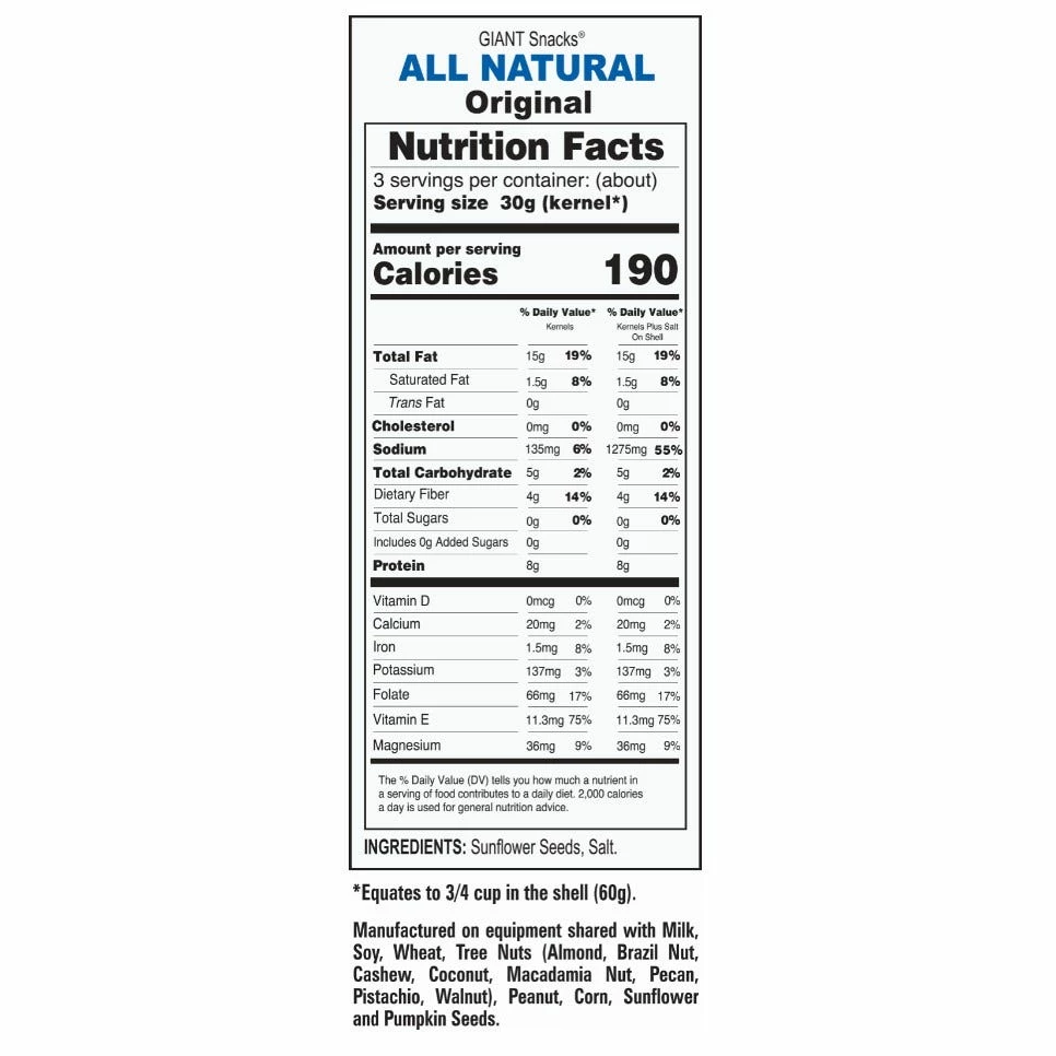 - GIANTS Sunflower Seeds Roasted Salted 5.75 oz.