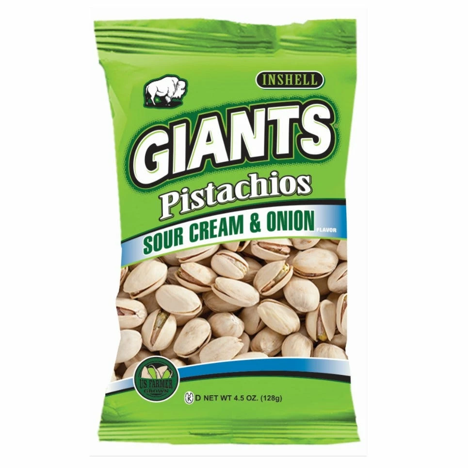 Giants Pistachios carry on the great tradition of quality you have come to expect when buying Giants Sunflower Seeds. These plump pistachios are combined with just the right amount of sour cream and onion seasoning to give you the best tasting pistachio on the market.