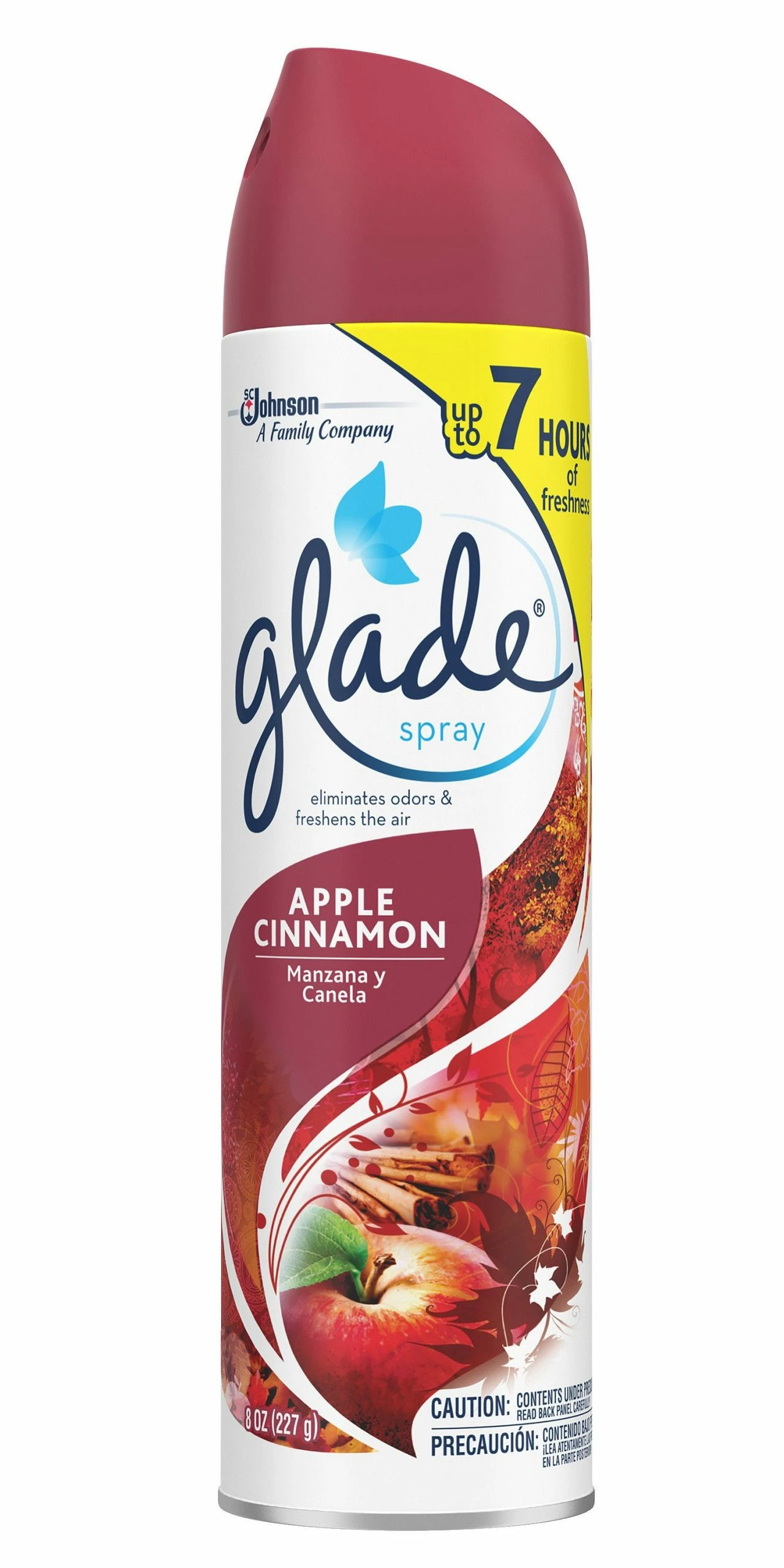 Glade Room Spray Air Fresheners eliminate odors and freshen the air, making your home uniquely inviting for all. Each is infused with essential oil extracts and comes in a variety of fragrances, ensuring yours will always be an open home. The scent of crisp McIntosh apples, cinnamon, and nutmeg in Glade Apple Cinnamon fills your home with the welcoming impression of spiced mulled cider, and feelings of genuine warmth and comfort.