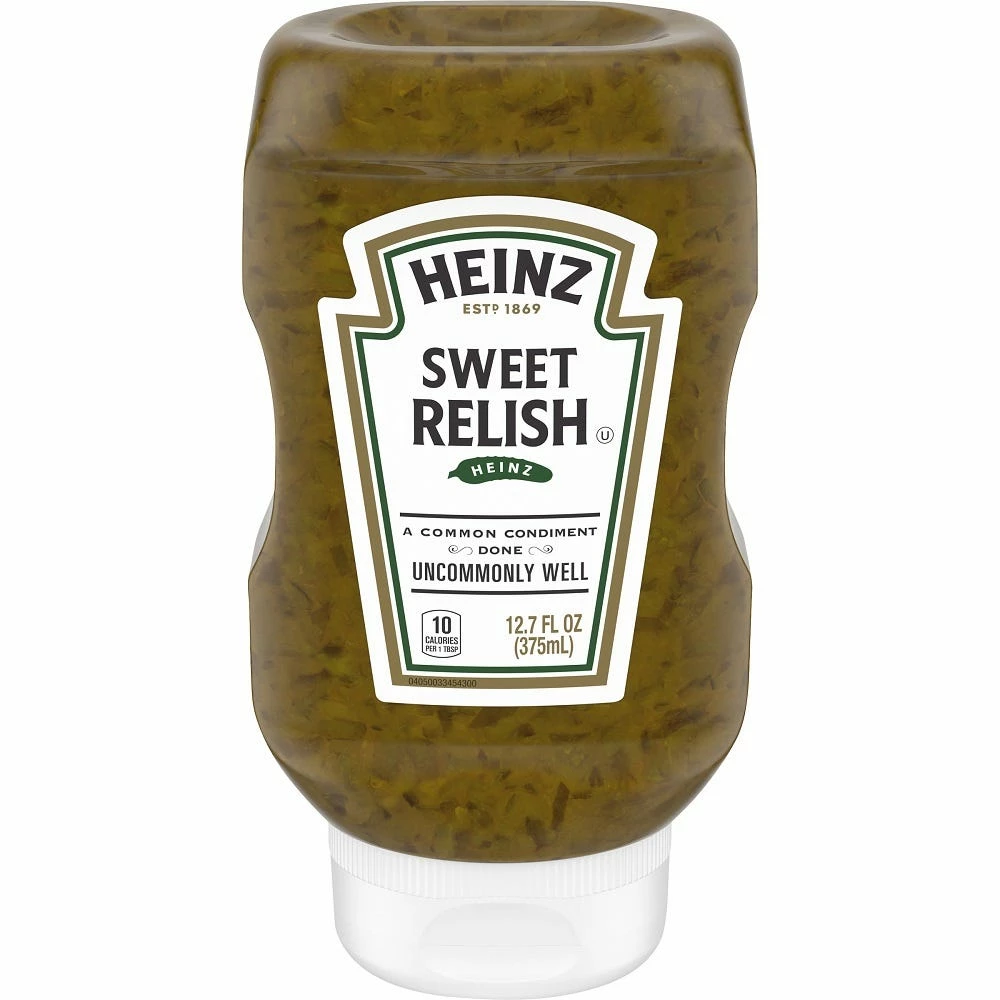 Featuring crunchy pickled cucumber and cabbage immersed in vinegar, Heinz Dill Relish will help you create flavors which complement any dish. With chunks of red bell pepper and extracts of garlic, this 12.7 fluid ounce bottle of Heinz Dill Relish will add a completely new dimension of flavors to your favorite dish. This relish is prepared with care so that every bottle has the perfect ratio of ingredients to complement your favorite foods. Just drizzle this relish on top of your food or use it as a dip and the crunch from cucumbers and cabbage will add life to any meal.