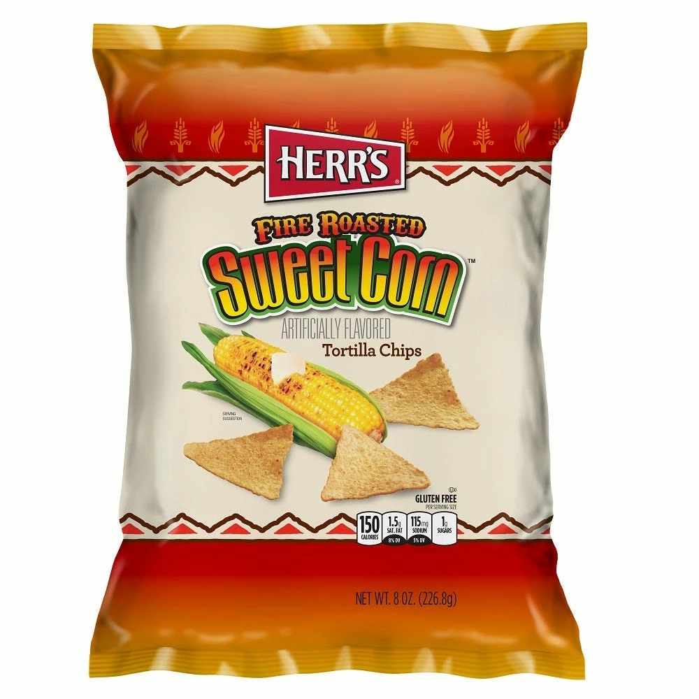 Sprinkled with just the right amount of seasoning, Herr’s 8 oz Fire Roasted Sweet Corn Tortilla Chips are the perfect complement to all your cookouts, parties, and family get-togethers. At Herr’s, Our Restaurant Style Tortillas are made with Only the Finest 100% White Corn, Prepared the Authentic Stone Ground Way and Seasoned with Our Delicious Fire Roasted Sweet Corn.