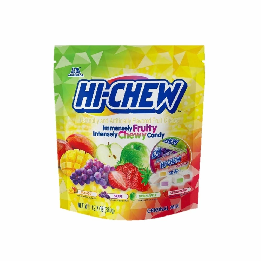 Hi-Chew is a unique long lasting chewy texture made with real fruit flavors, in individually wrapped pieces.