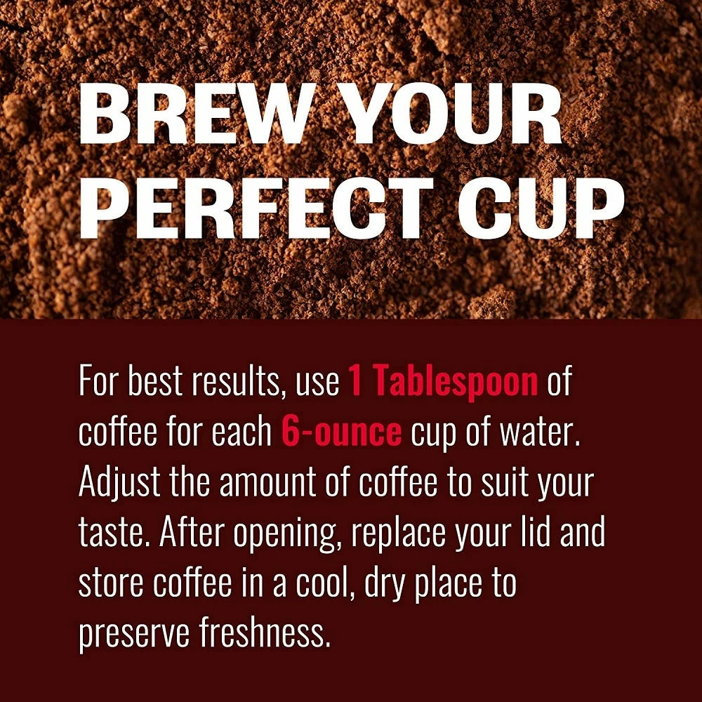 - For the Best Cup of Coffee: Use 1 Tablespoon of coffee for each 6-ounce cup of water. Adjust the amount of coffee to suit your taste. After opening, replace lid and store coffee in a cool, dry place to preserve freshness.