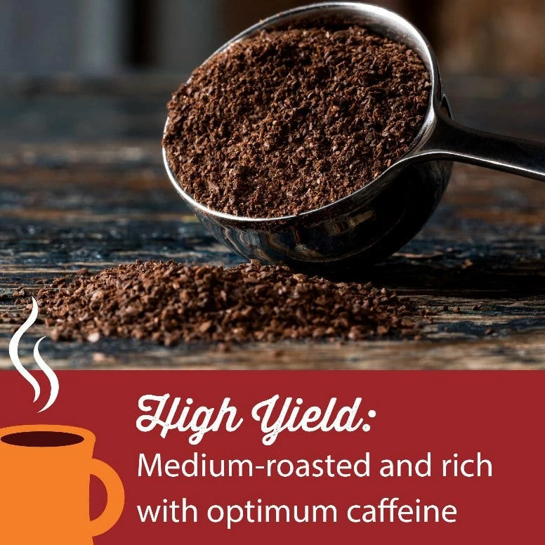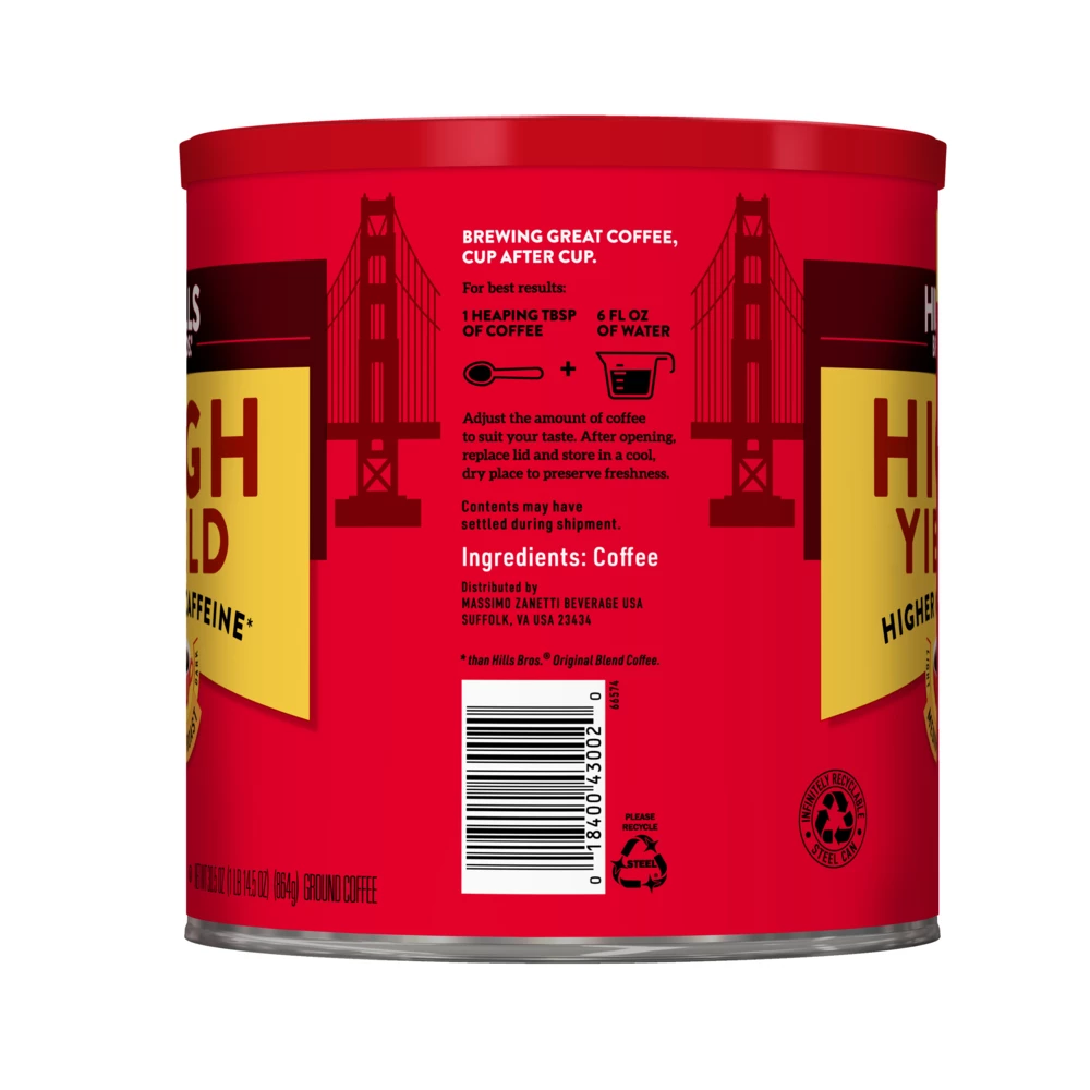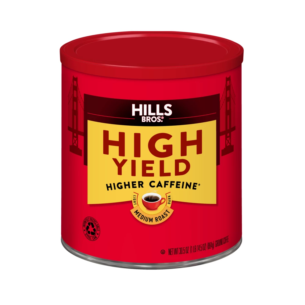 - Optimum Caffeine: This high yield medium roast Hills Bros coffee has the rich full-bodied flavor to fulfill your craving anytime. Each sip consistently offers that dependable smooth and rich coffee taste, day in and day out.