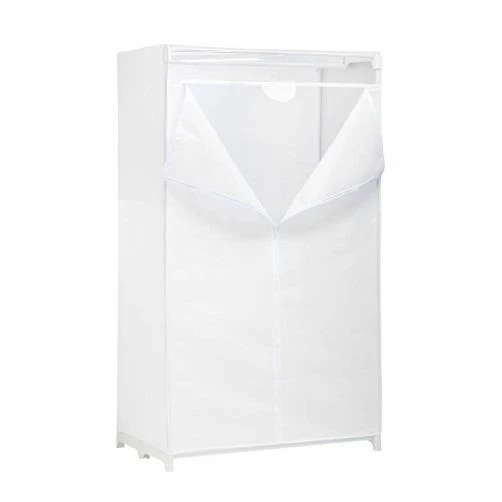 Honey-Can-Do WRD-01271 36″ Cloth Wardrobe. This 36-Inch wide wardrobe and storage closet provides an amazing value for storing your garments, off-season clothing, and other hanging items. A heavy-duty steel rod provides 35-inches of hanging space while the breathable, lightweight cloth cover completely surrounds your garments, protecting them while in storage. A peek-through top window provides quick visibility to contents and centered zip closure opens for easy access. Top and bottom of wardrobe are fabric.