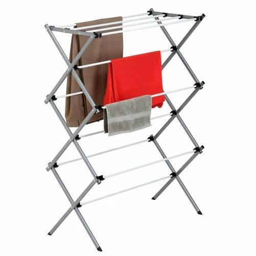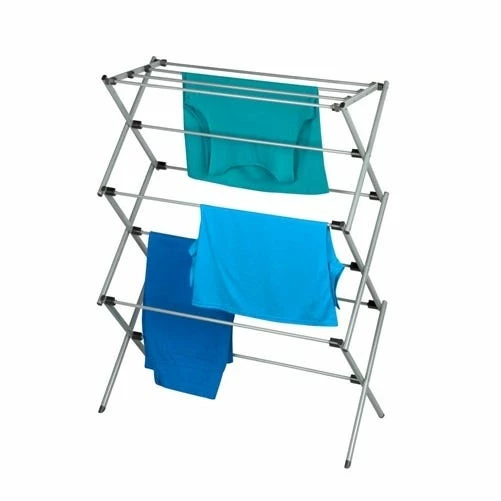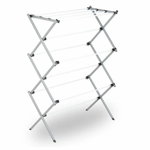 Honey-Can-Do DRY-01306 Deluxe Knockdown Metal Drying Rack, Silver/White. This sleek steel drying rack is sturdy and rust-resistant. Unlike a wall-mounted unit, this portable rack can be used anywhere including the laundry room, balcony, porch, bathroom, or kitchen making an attractive drying space out of any room in your home. The space-saving unit offers 24-linear feet of drying area when fully assembled and folds down to 3-inches flat for easy storage when not in use. Save on energy costs while protecting the environment and increasing the life of your garments. Product should not be stored outdoors.