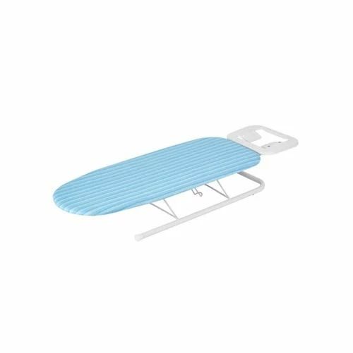 Honey-Can-Do BRD-01294 Deluxe Tabletop Ironing Board with Iron Rest, Aqua Blue/White. This colorful tabletop ironing board is a great space-saving laundry tool. Compact in size, it’s a great choice for small homes, apartments, dorm rooms, or the office. When set-up, this portable board provides a sturdy, ample ironing surface and incorporates a metal iron rest to prevent scorching. To store, just fold the legs and iron rest in for a slim, flat board that easily fits in a closet, under the bed, or in the car. Pad and vibrant aqua blue cover included. Â Wood and cloth construction.