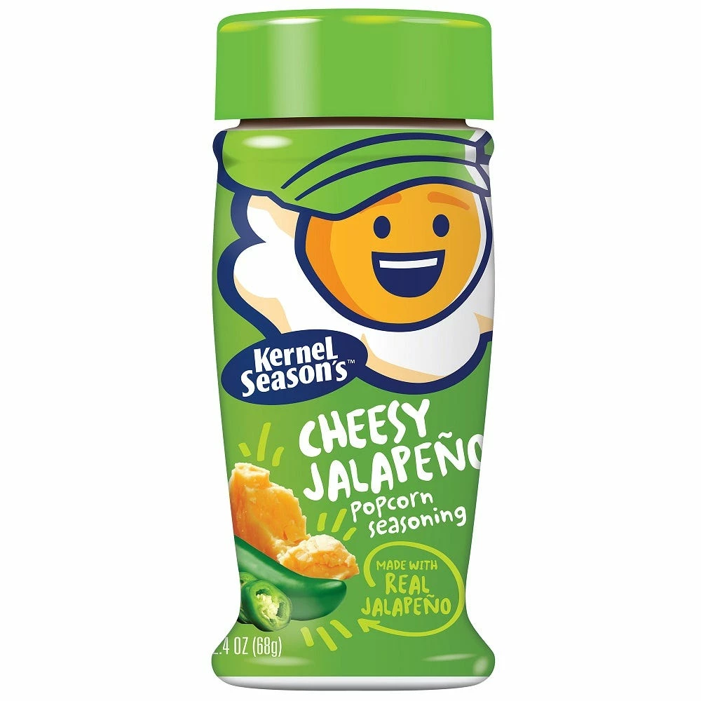 Kernel Seasoning Cheesy Jalapeno popcorn seasoning is made with real jalapeno and features an excellent source of vitamins A, C and E, no preservatives and more! The seasoning variety feature a delicious seasoning flavor that is sure to please the whole family. Bring the heat! When real jalapeno hits the taste of cheddar things get pretty spicy and fun!