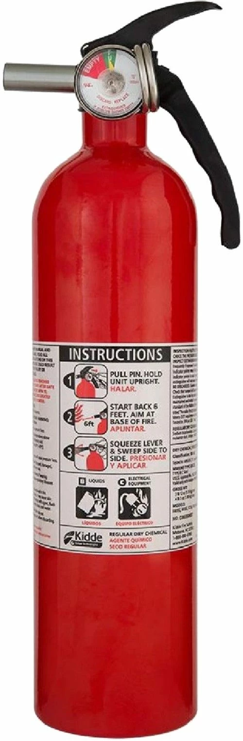 Having a fire extinguisher within reach can help you create a path to safety, and may even help put out a small, contained fire. This Kidde fire extinguisher is UL rated 1-A, 10-B:C. This fire extinguisher is suitable for use on Class A (trash, wood & paper), Class B (liquids & gases) and Class C (energized electrical equipment) fires. The Recreational unit is fitted with a pressure gauge that provides at-a-glance status, is manufactured from lightweight aluminum and a tough aluminum valve assembly. Includes plastic strap bracket.