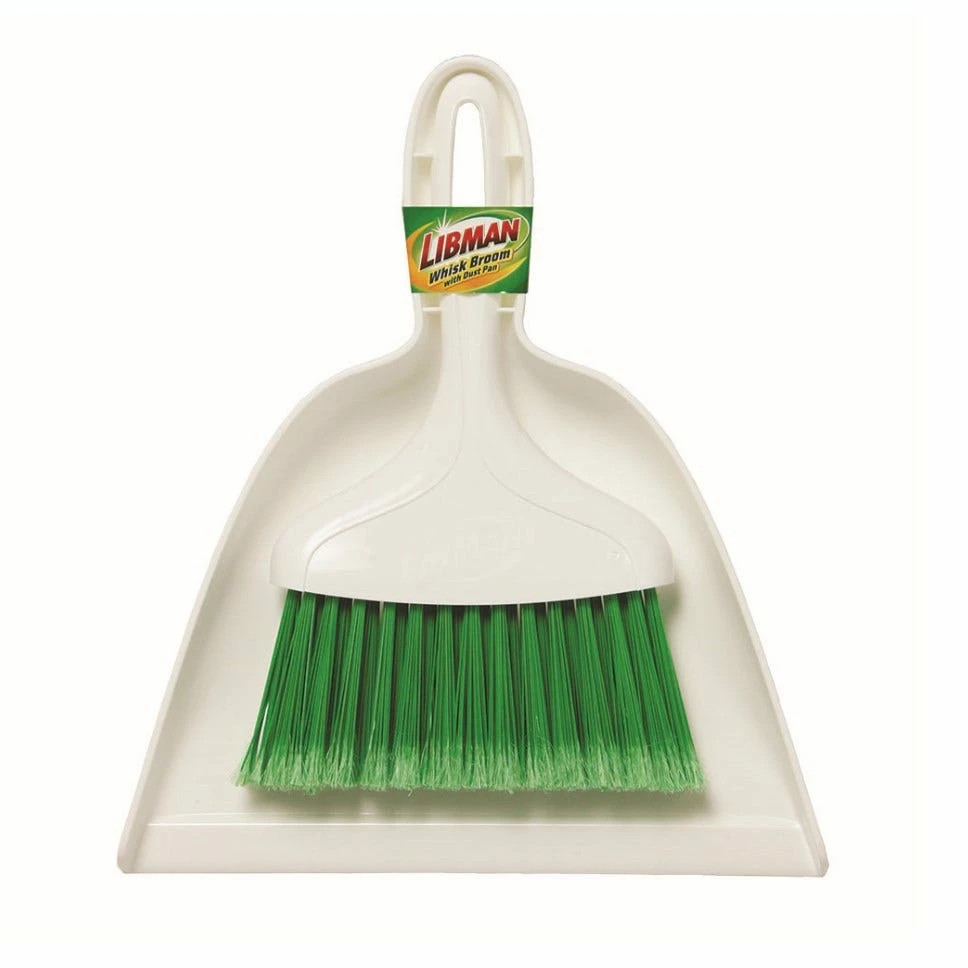 - Whisk broom and duster snap into handle of dust pan for easy storage