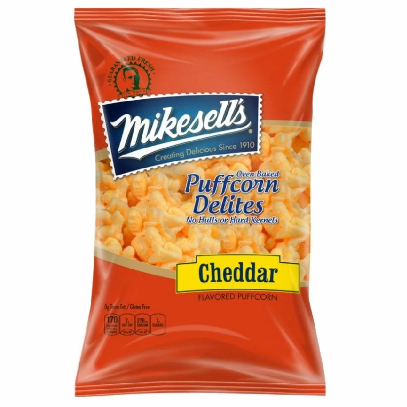 Puffcorn is crafted with premium real cheddar cheese, light as air and delightfully delicious. It munches just like your favorite cheese popcorn, but without the hulls and kernels.