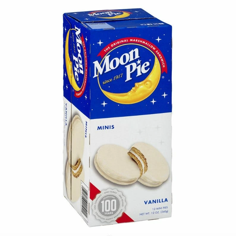 Big MoonPie taste in a kid-sized treat. The Mini MoonPie is perfect for the lunch-box, after-school snacking and those on-the-go munchies. These little guys always bring on big, big smiles. Allergy Information: Manufactured on equipment that processes products containing peanuts and tree nuts.