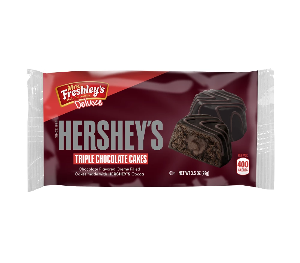 The Mrs. Freshley’s Hershey’s Triple Chocolate Cake is a delicious dessert that can be enjoyed by kids and adults alike. These creme-filled chocolate cakes are great for snacking on the go.