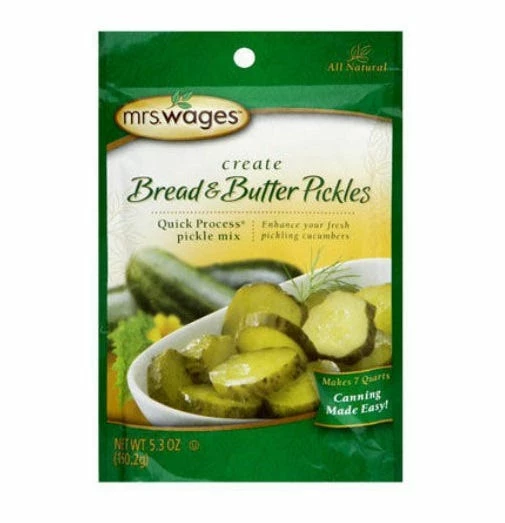 Enhance the fresh taste of your home-grown pickles or farm stand pickles with Mrs. Wages Quick Process Bread and Butter Pickles. This tender sweet pickle mix has onions, natural herbs, and spices for added flavor.