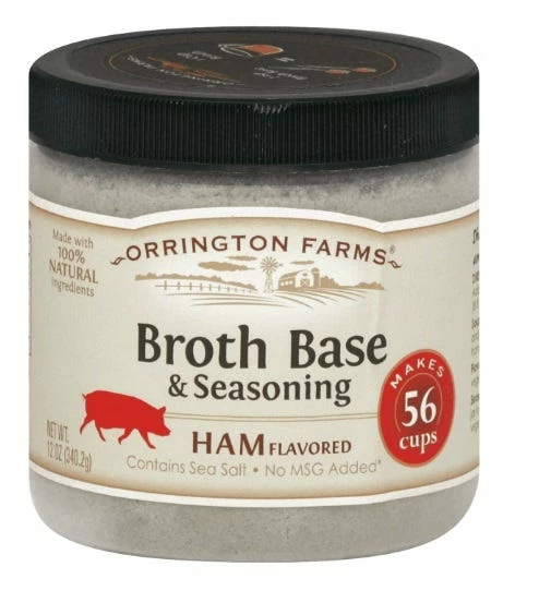 A granular style flavored base that contains no meat. An ideal seasoning for beans and vegetables, especially greens, cabbage and potatoes. Suggested uses include split pea soup, barbecue sauces, mashed potatoes, clam chowder, meat loaf, gravies and sauces. One pound makes five gallons of delicious old-fashioned ham broth or stock. Finished products taste like ham was used in the process—only in this case—no fat or cholesterol is present.