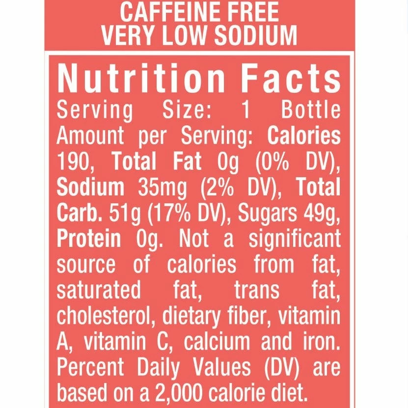 Ingredients: Carbonated water, high fructose corn syrup, citric acid, malic acid, potassium benzoate preservative, potassium citrate, artificial flavor, gum acacia, red 40