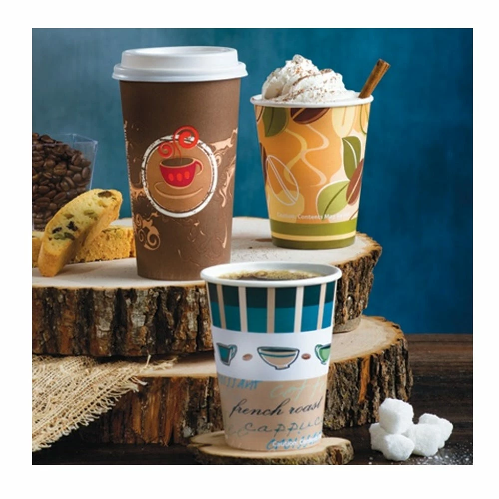 Enjoy your favorite hot or cold beverage on-the-go with these disposable, 20ozcups and lids in assorted designs.