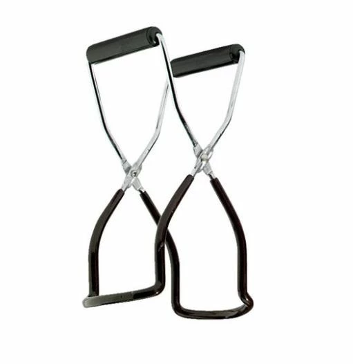 This tool is a canning essential, designed to safely remove any size canning jar from boiling water, keeping hands safely away from heat. Vinyl coated grip clamps securely on jar tops, reducing the chance of breakage.