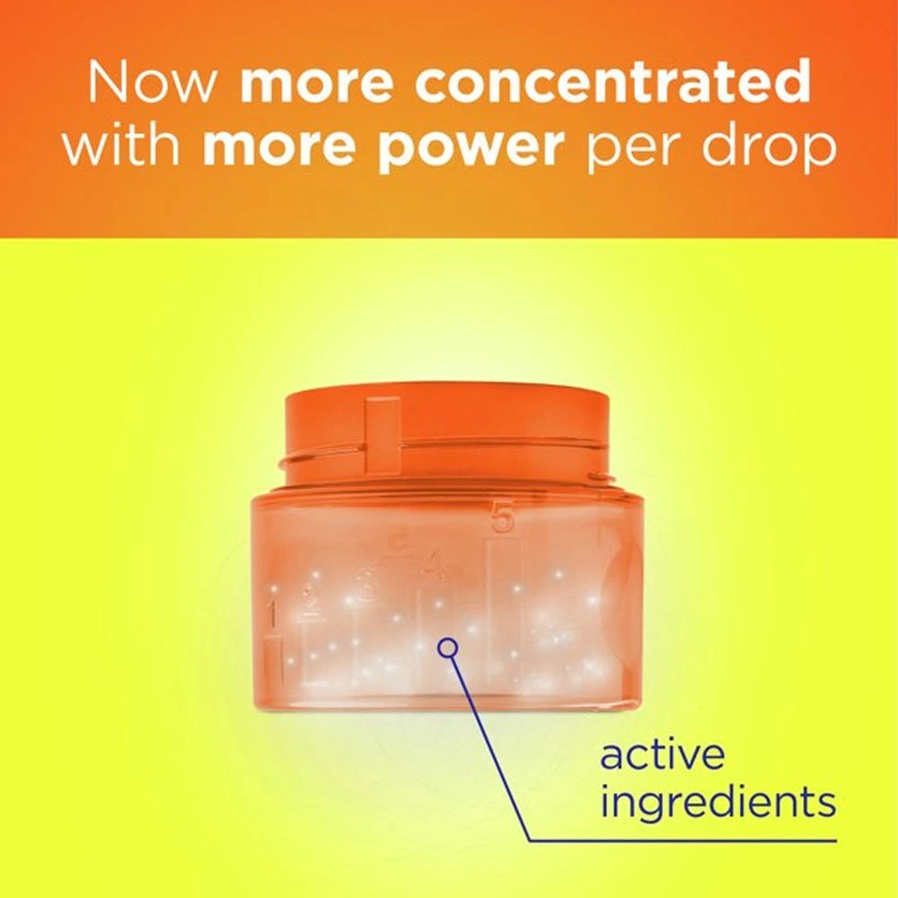 - With a more concentrated formula, you get more cleaning agents and less water in every drop. vs. previous formula