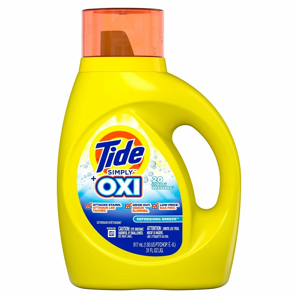 Tide Simply Plus Oxi Liquid Laundry Detergent fights stains and odors with twice the Oxi fighting power,* where all you need is one dose per load with no need to pretreat. Tide Simply Plus Oxi targets those tough odors deep in the fibers of your clothes, and is available at a great low price. The Refreshing Breeze scent infuses your clothes with floral, fruity and woody notes for a fresh, clean scent every time. It works with both HE and standard washing machines.