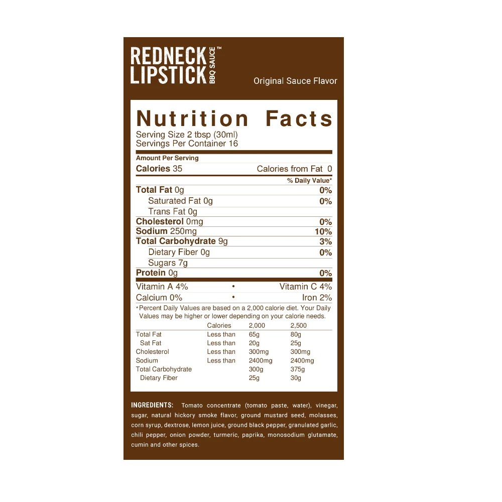 Redneck Lipstick Original BBQ Sauce, 18oz – Condiments & Sauces