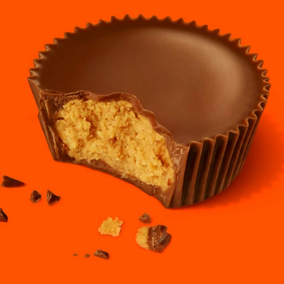 For peanut butter lovers who really want something to take a bite out of no fiddling around with a bunch of mini cups; just crack this one open and get munching. Each cup is covered in smooth Hershey’s milk chocolate and is filled with Reese’s peanut butter of course. Two big cups per package for ultimate peanut buttery snacking.