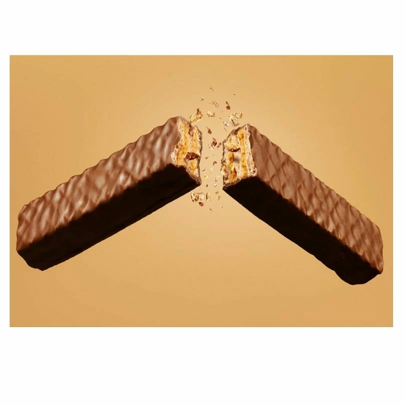 - Layers of crispy wafers and peanut butter, covered in chocolate