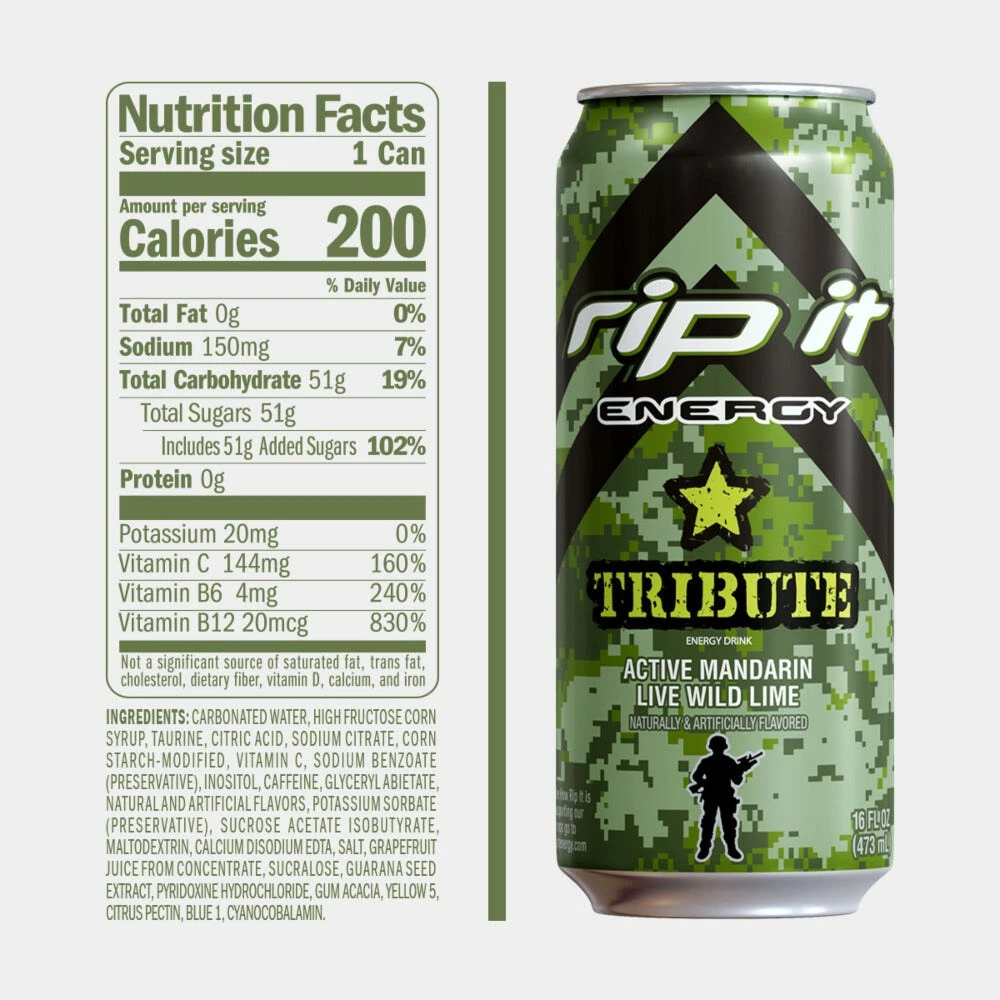 Live wild lime and active mandarin will give you the ride only RIP IT can bring. Naturally & artificially flavored. See how Rip It is supporting our troops go to ripitenergy.com. Product of USA.