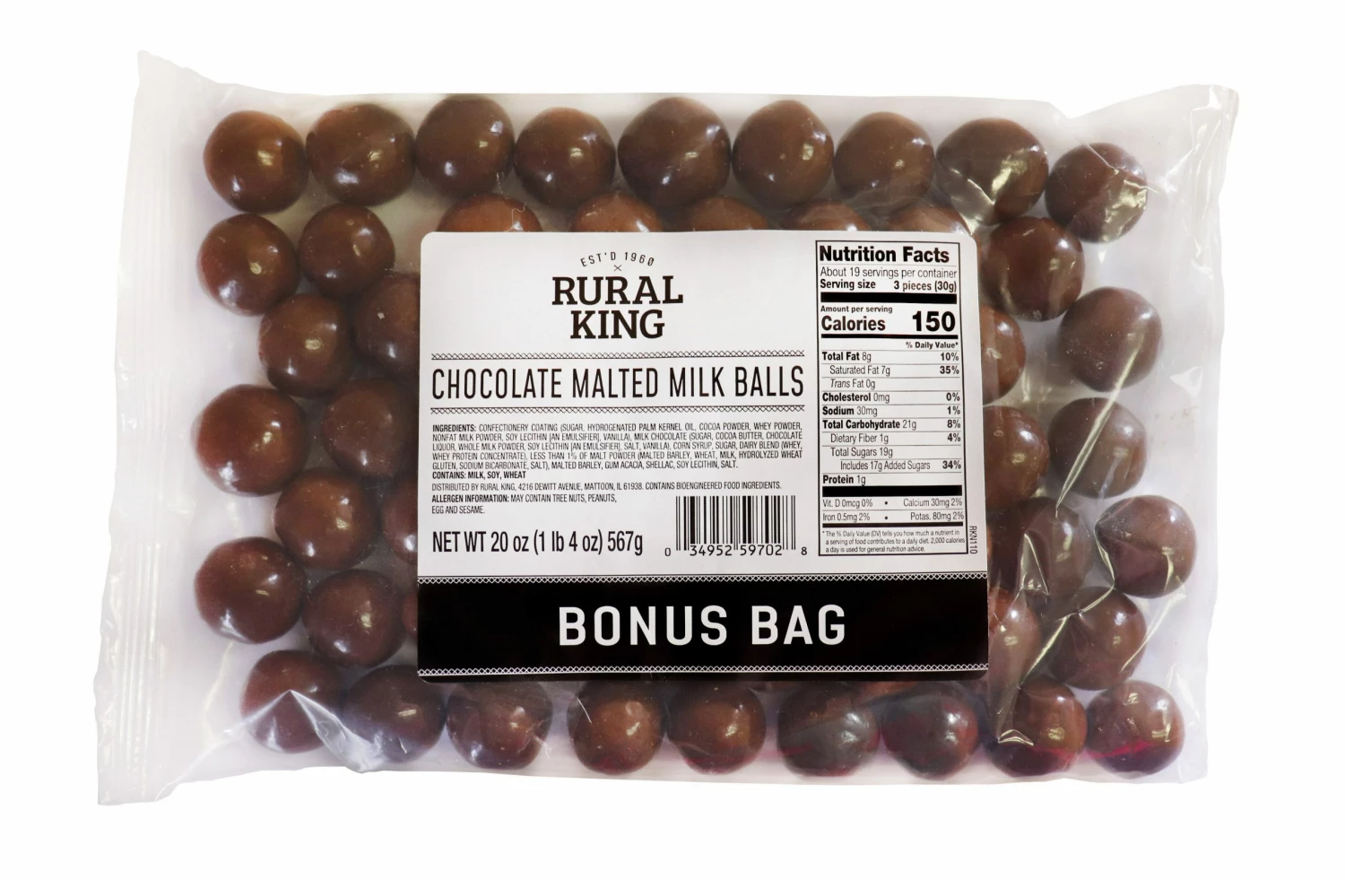 Rural King Chocolate Malted Milk Balls BONUS BAG – Candy & Gum
