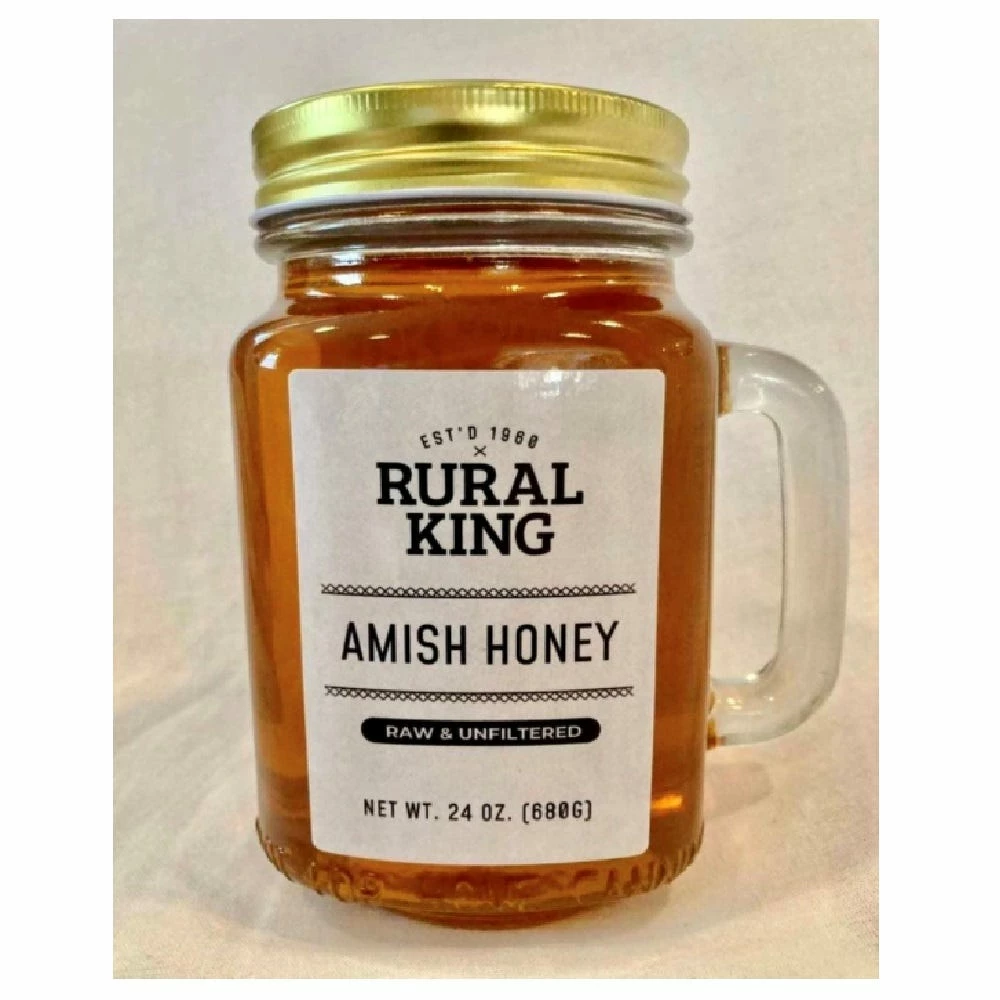 - Raw honey all natural from Amish farms bottled in reusable drinking glass jar with handle