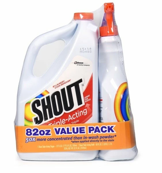 Shout Triple-Acting is packed with stain-fighting ingredients and enzymes to quickly penetrate, break up and remove tough stains.