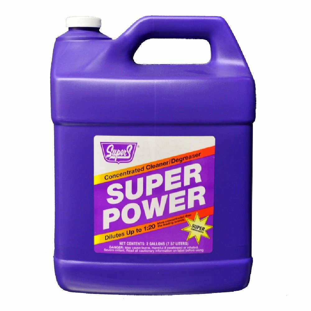 Super S Super Power Concentrated Cleaner & Degreaser is a powerful concentrated non hazardous cleaner and degreaser. Special deep cleaning formulation separates, entraps and removes grease, dirt, oil, and grime from almost every type of surface. The industrial strength formula may be diluted to get the right strength for a multitude of applications. This powerful cleaner de-greaser easily separates, entraps and removes grease, dirt, oil and grime from almost every type of surface.