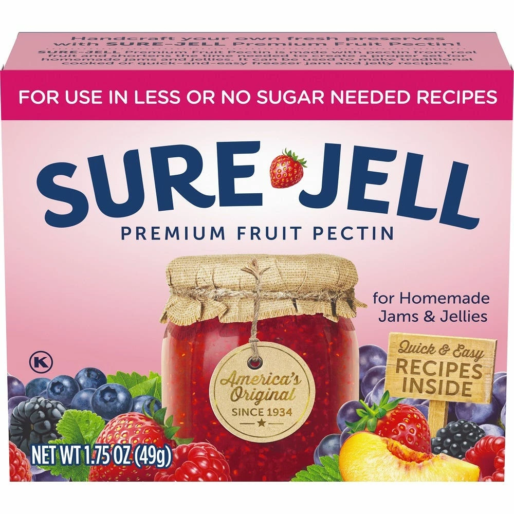 Sure-Jell Premium Fruit Pectin is a kitchen staple for homemade jams and jellies. America’s original since 1934, this premium gelling agent makes a great food thickener. Simply mix this powdered fruit pectin into traditional cooked or quick freezer jams to help your preserves thicken for the perfect set. Use it in less or no sugar strawberry jam, elderberry jelly or apricot jam, or try one of the quick and easy recipes inside the package.