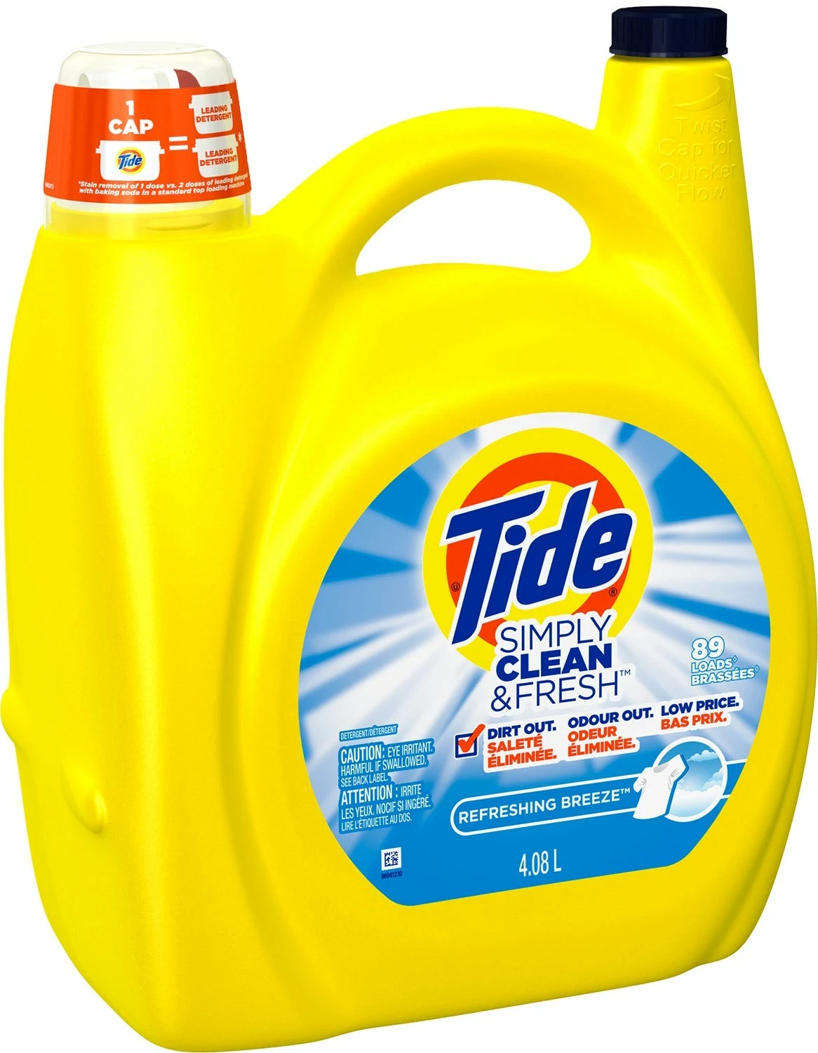 Tide Simply Clean and Fresh High Efficiency Liquid Laundry Detergent fights dirt and odors with 2X the power of baking soda laundry detergent. With the power of Tide, you only need one dose per load and no pre-treating is necessary. The Refreshing Breeze scent infuses your clothes with floral, fruity and woody notes for a fresh, clean scent in every load. Tide Simply Clean and Fresh targets tough odors deep in the fibers of your clothes, now at a great low price. Compatible with both HE and standard washing machines, Tide Simply Clean and Fresh provides the consistent, quality clean you’ve come to expect from Tide. Tough on odors and easy on your wallet, it gives you the results you’re looking for.
