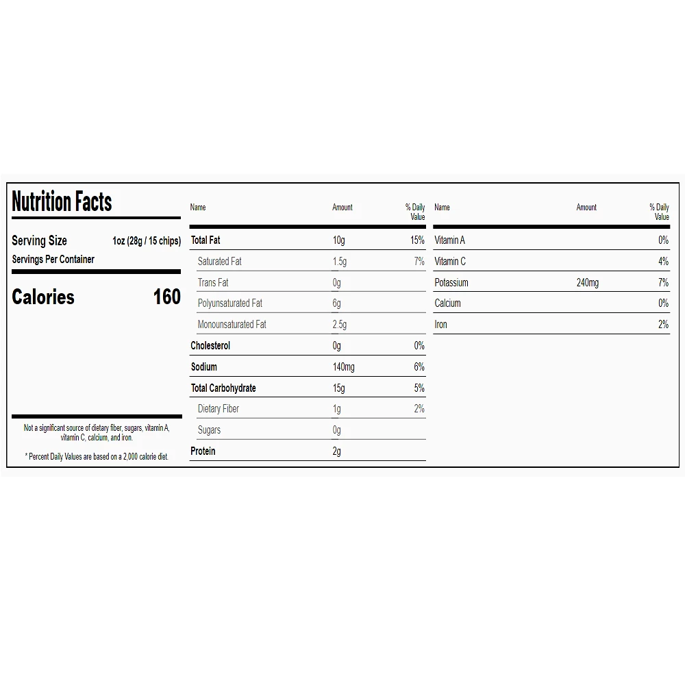 Ingredients: Potatoes, Vegetable Oil (contains one or more of the following: corn, sunflower or cottonseed oil), Salt. Manufactured on equipment that processes products containing dairy, soy and wheat.