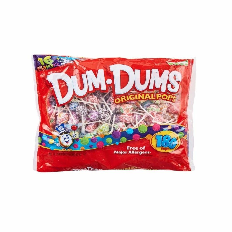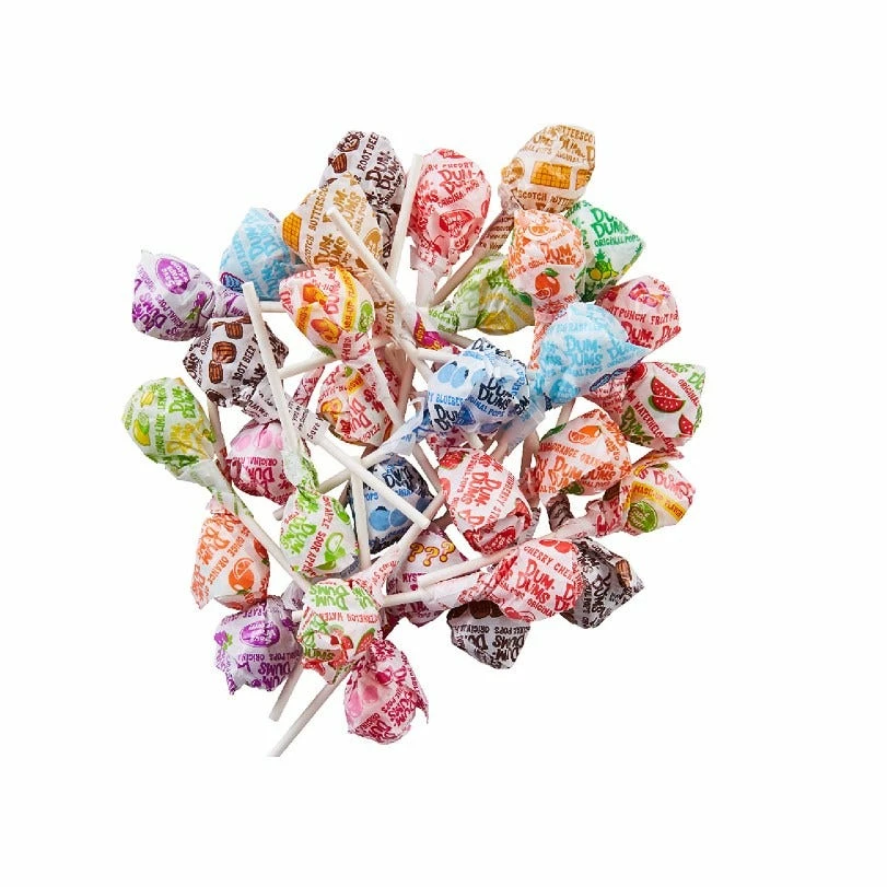 Enjoy these Dum Dums in a variety of flavors! Watermelon, Strawberry, Cherry, Grape, Blu Raspberry, Root Beer, Sour Apple, Cream Soda, Butterscotch, Cotton Candy, Bubble Gum, Mango, Orange, Blueberry, Fruit Punch, Dulce de Leche, and the Mystery Flavor!